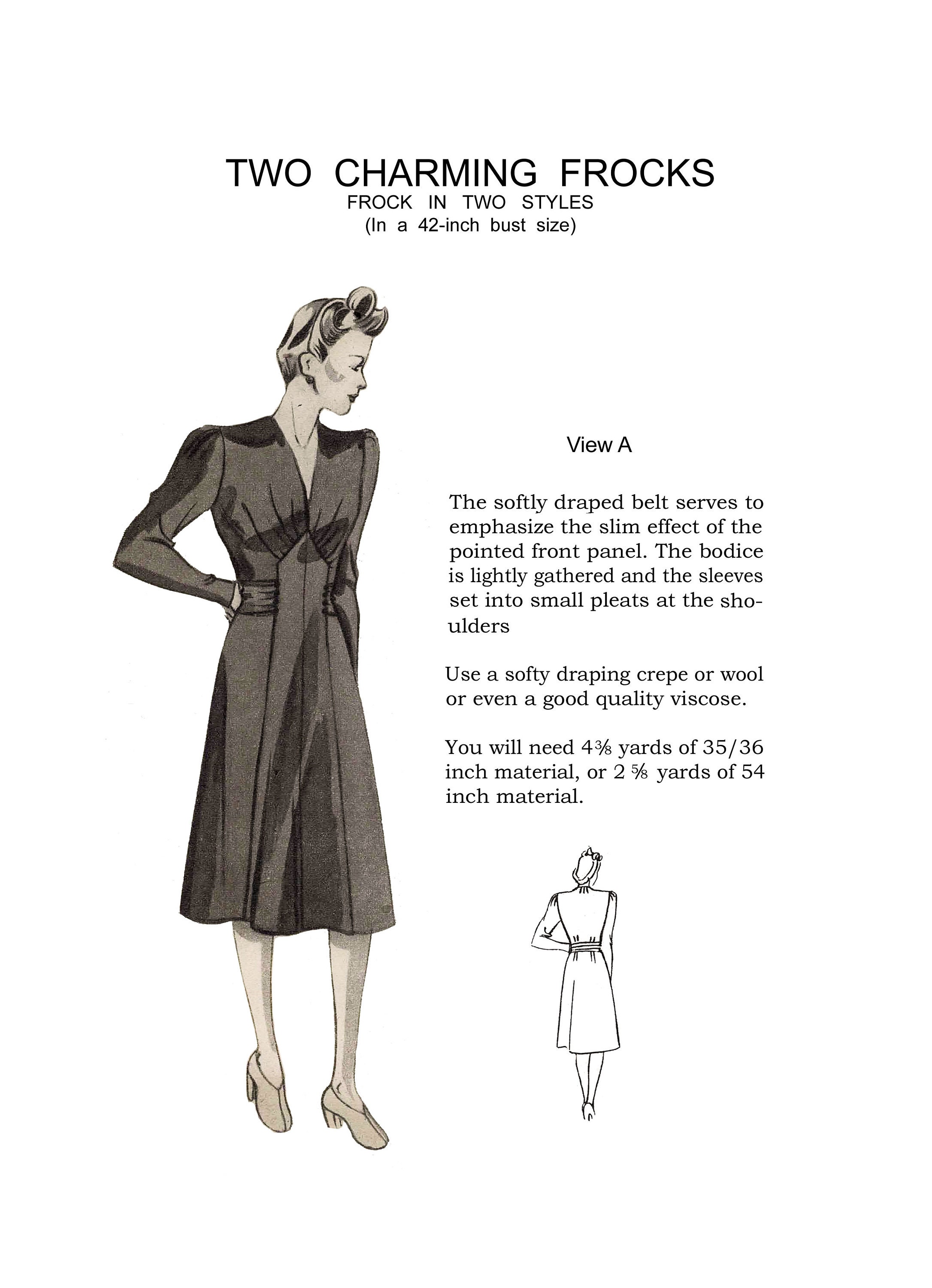 1940s Two Charming Tea Frocks Pattern Bust 42 Etsy Norway